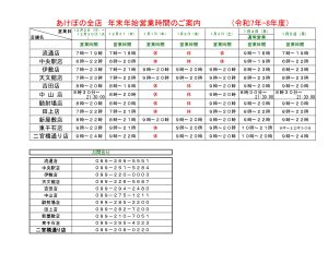 年末年始の各店舗の営業時間のお知らせです